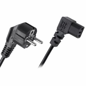 – Cabo alimentação SCHUKO / IEC C13 3P– Schuko 3P Macho 90º / IEC320 3P 90º Fêmea– Estrutura em PVC preto– 2 Conectores Ângulares (90º)– Secção do cabo: 3×0.75mm2– Comprimento cabo: 1.8 Metros