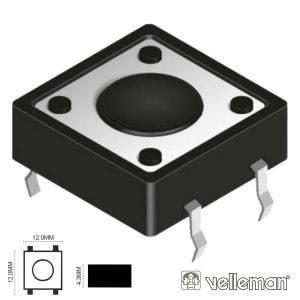 – P/ todo o tipo de equipamentos electrónicos– Classificação: 12Vdc 50mA, altura: 4.3mm– Resistência de isolamento: >100Mohm-250Vcc– Tensão: 100VAC 1 minuto, resistêwncia de con-tacto <100mohm, temperatura de solda: 255ºC– Força de operação: 130 a 160 ± 30gf
