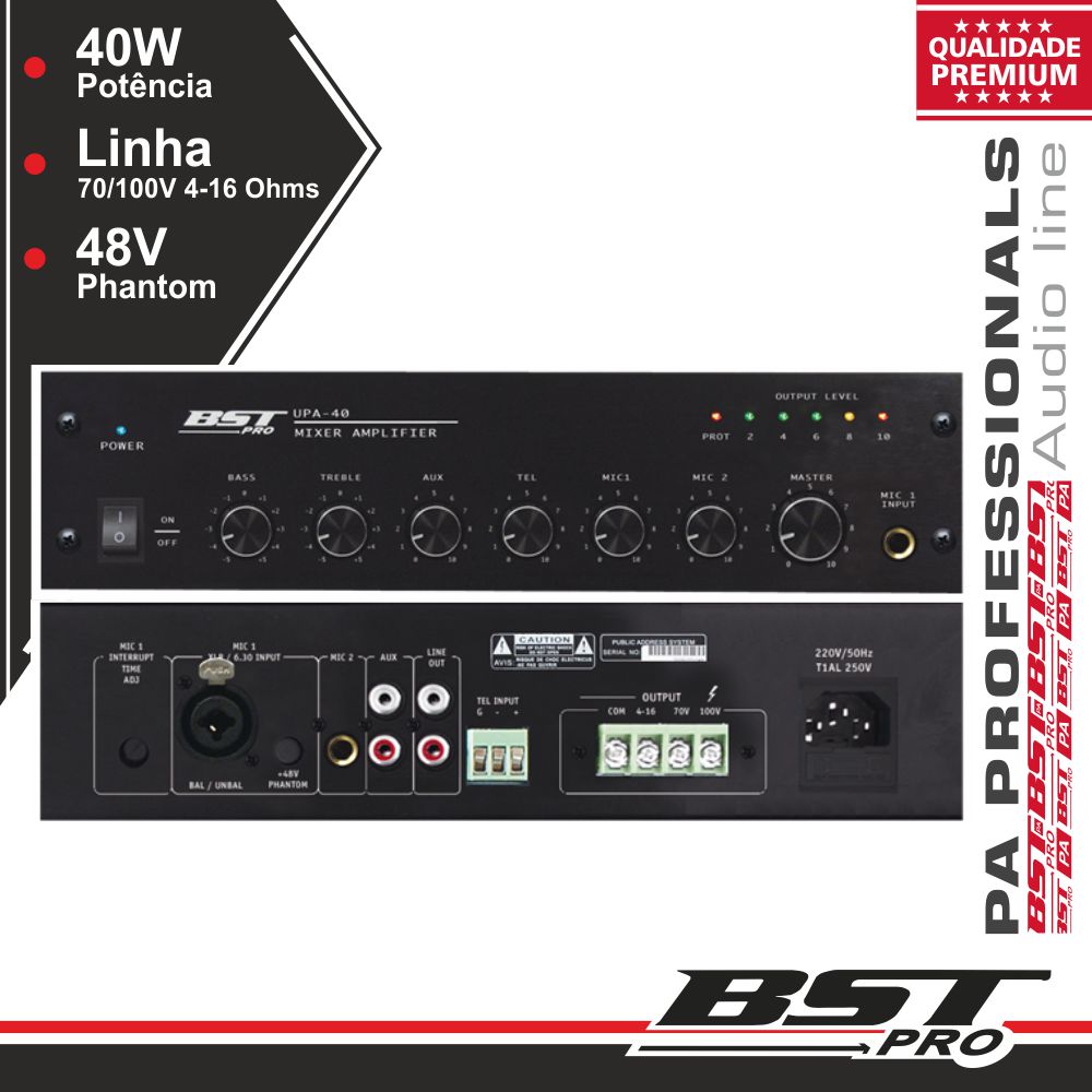 Amplificador Pa Phantom 40W 4 Entradas BSTPRO