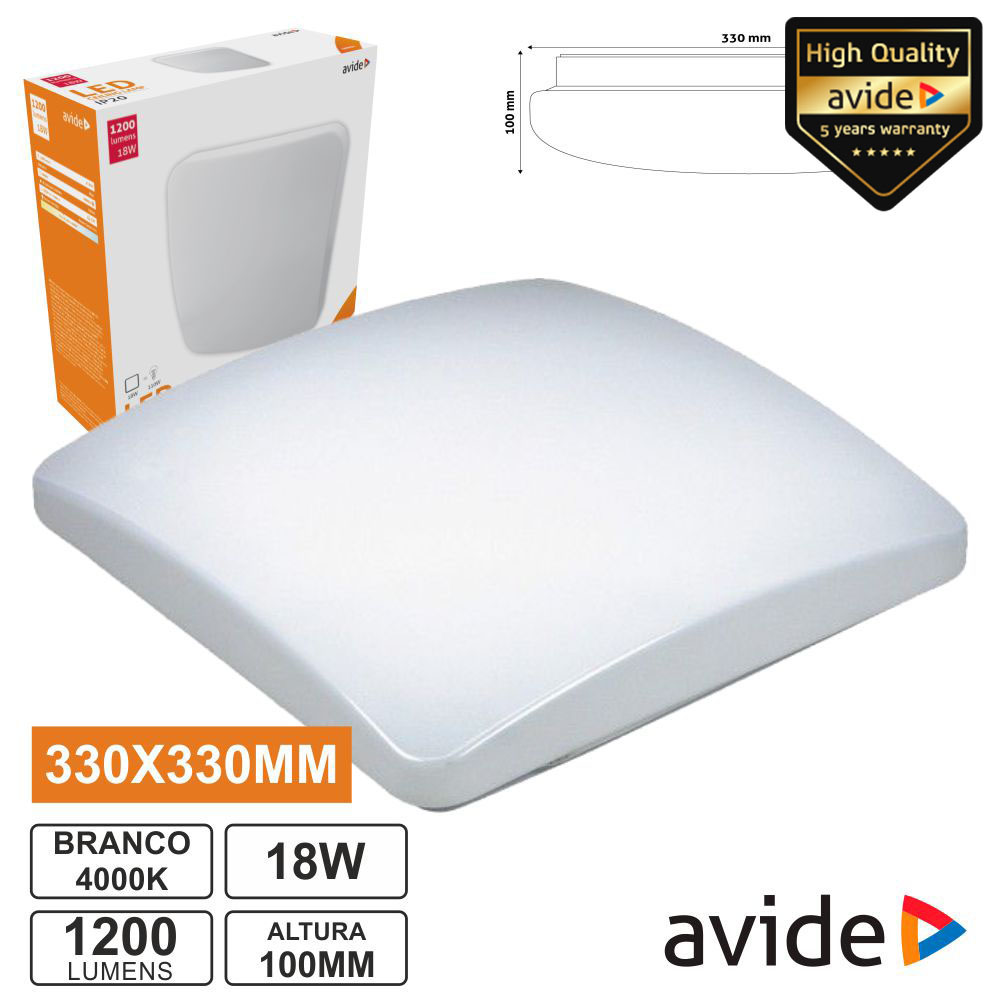Aplique LED Quadrado 18W 330mm 4000k 1200lm AVIDE