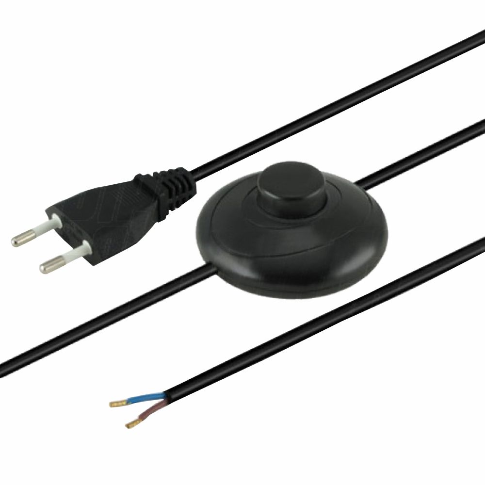 – Cabo alimentação c/ interruptor de pé– Capacidade máxima 2.5A@250V– Estrutura em PVC preto– Diâmetro condutores: 2x Ø0.75mm²– Comprimento cabo: 2 Metros