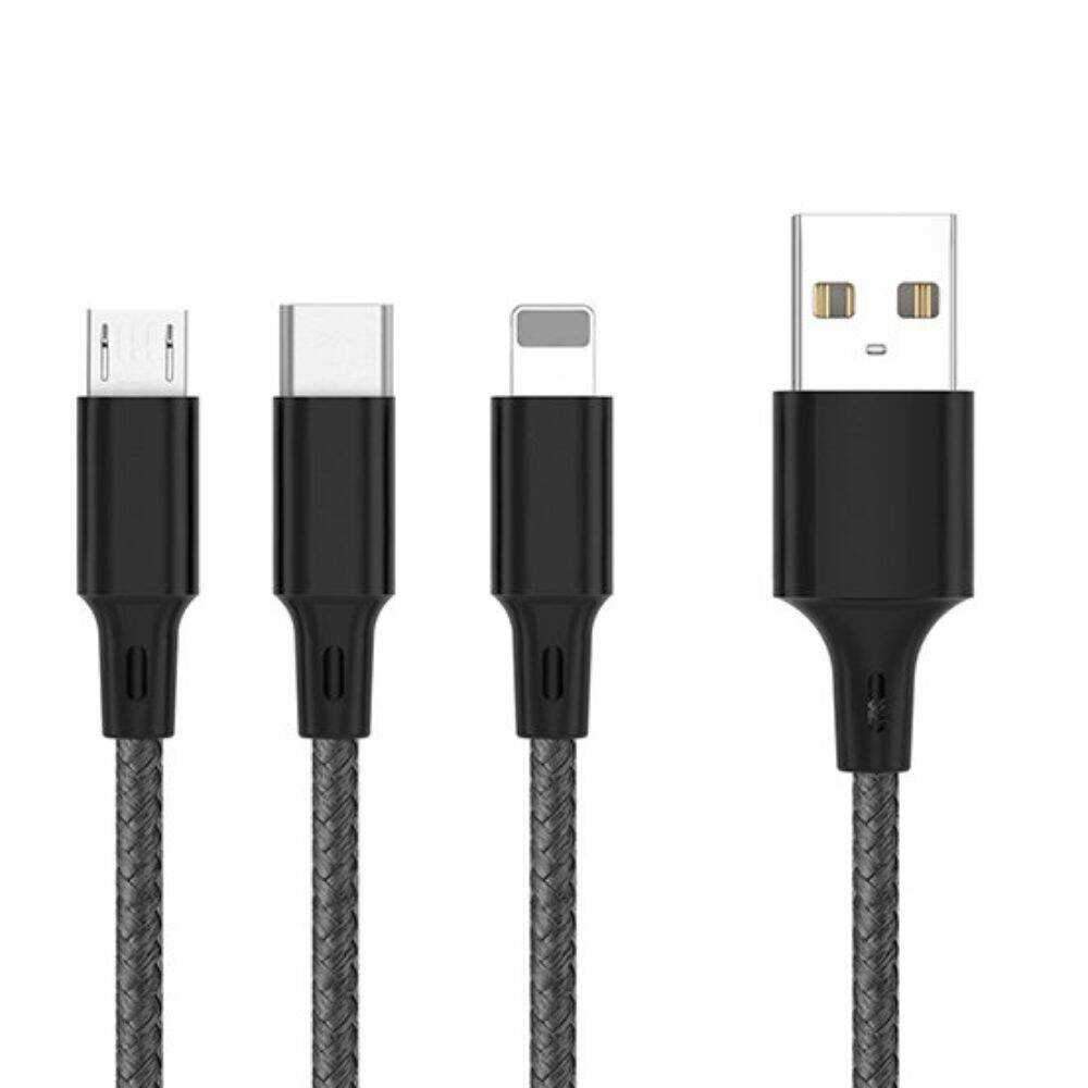 Cabo USB-A 2.0 Macho p/ Lightning/USB-C/MicroUSB 6A