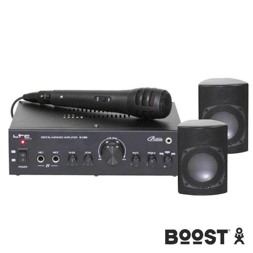 Conjunto Amplificador 2x20w 2 Colunas 1 Mic BOOST