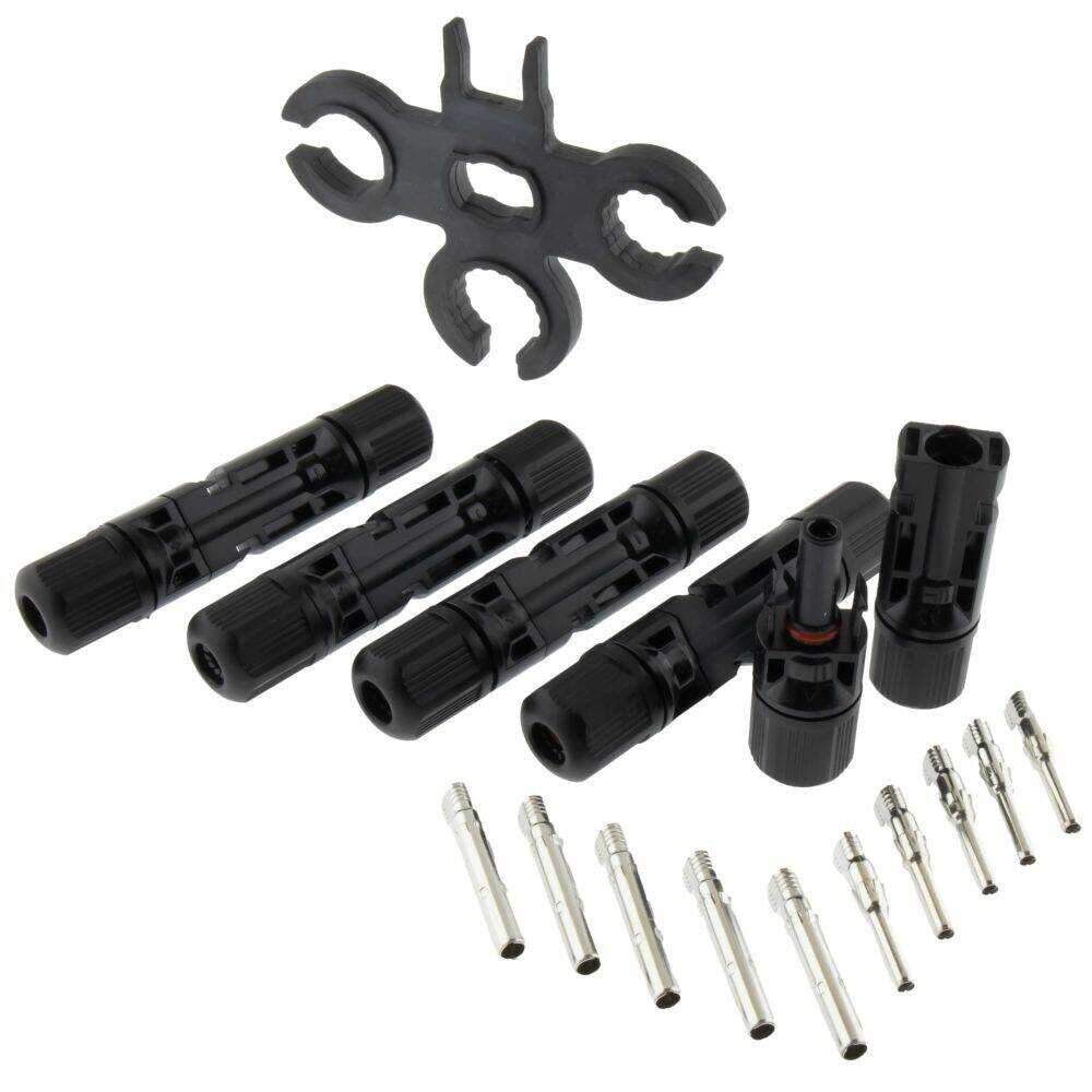 – Conjunto de fichas fotovoltaicas MC4 IP67– Composto por 5 fichas macho e 5 fichas fêmea– Inclui Chave de montagem– Adequado p/ cabos de 2.5 até 6.0mm²