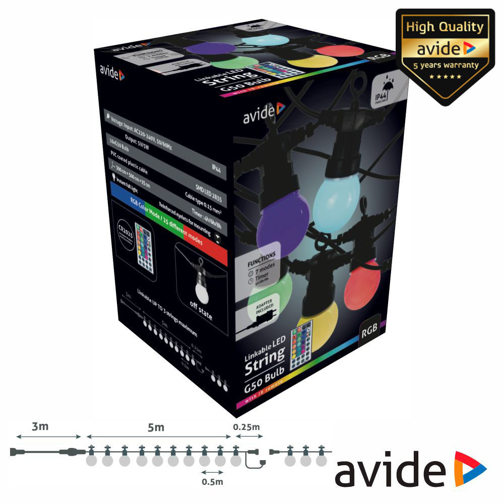 Corrente de Iluminação C/ 10 Lâmpadas RGB e Comando AVIDE