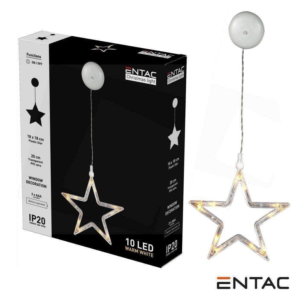 Estrela Decorativa C/ Ventosa 10 LED 3000K Pilhas AAA ENTAC
