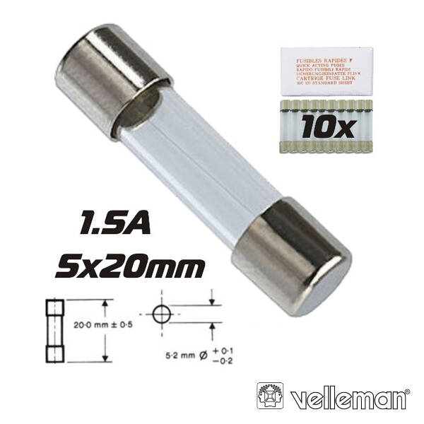 Fusível 5×20 Fusão Lenta 1.5A (10X) VELLEMAN