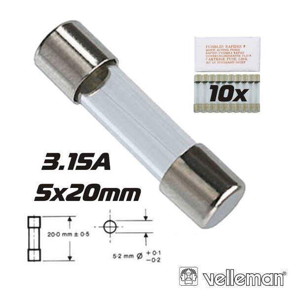Fusível 5×20 Fusão Lenta 3.15A (10X) VELLEMAN