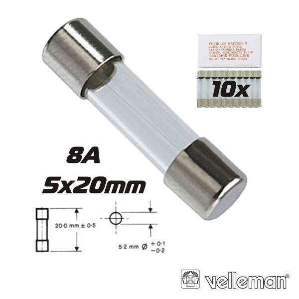 Fusível 5×20 Fusão Lenta 8a (10X) VELLEMAN