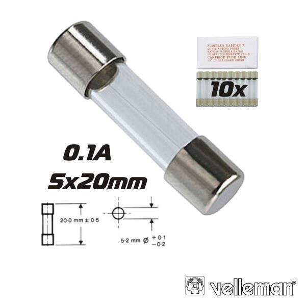 Fusível 5×20 Fusão Rápida 0.1A (10X) VELLEMAN