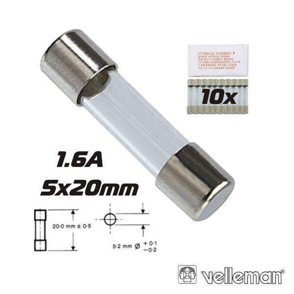 Fusível 5×20 Fusão Rápida 1.6a (10X) VELLEMAN