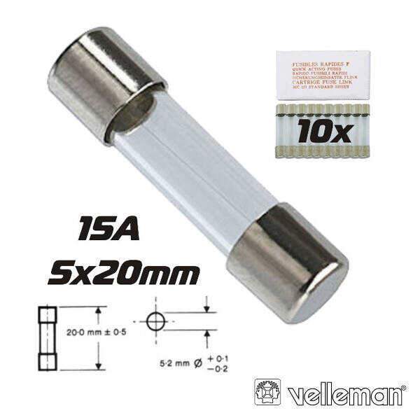 Fusível 5×20 Fusão Rápida 15A (10X) VELLEMAN