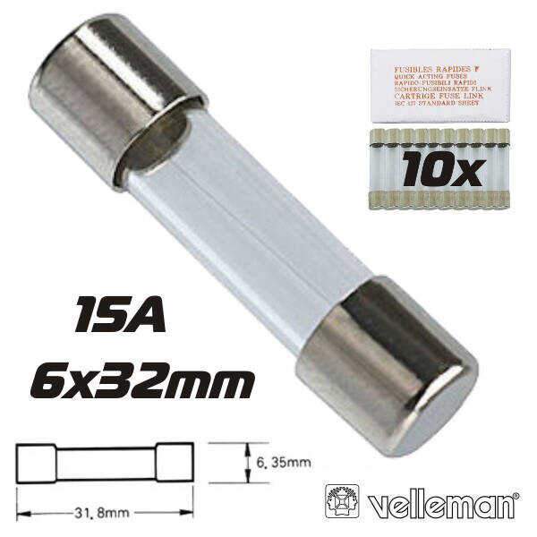 Fusível 6×32 Fusão Lenta 15a (10X) VELLEMAN