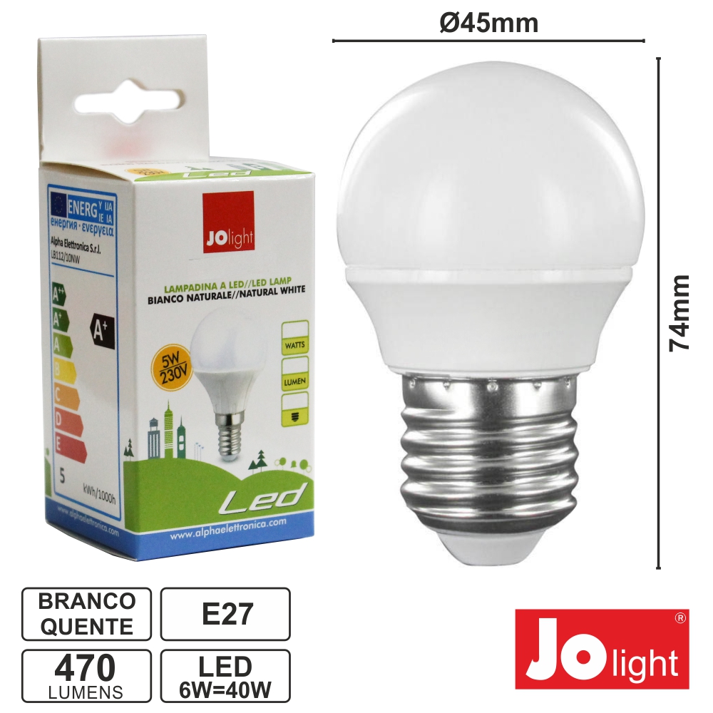 Lâmpada E27 6w=40w 230v Leds Globo Branco Quente 470lm