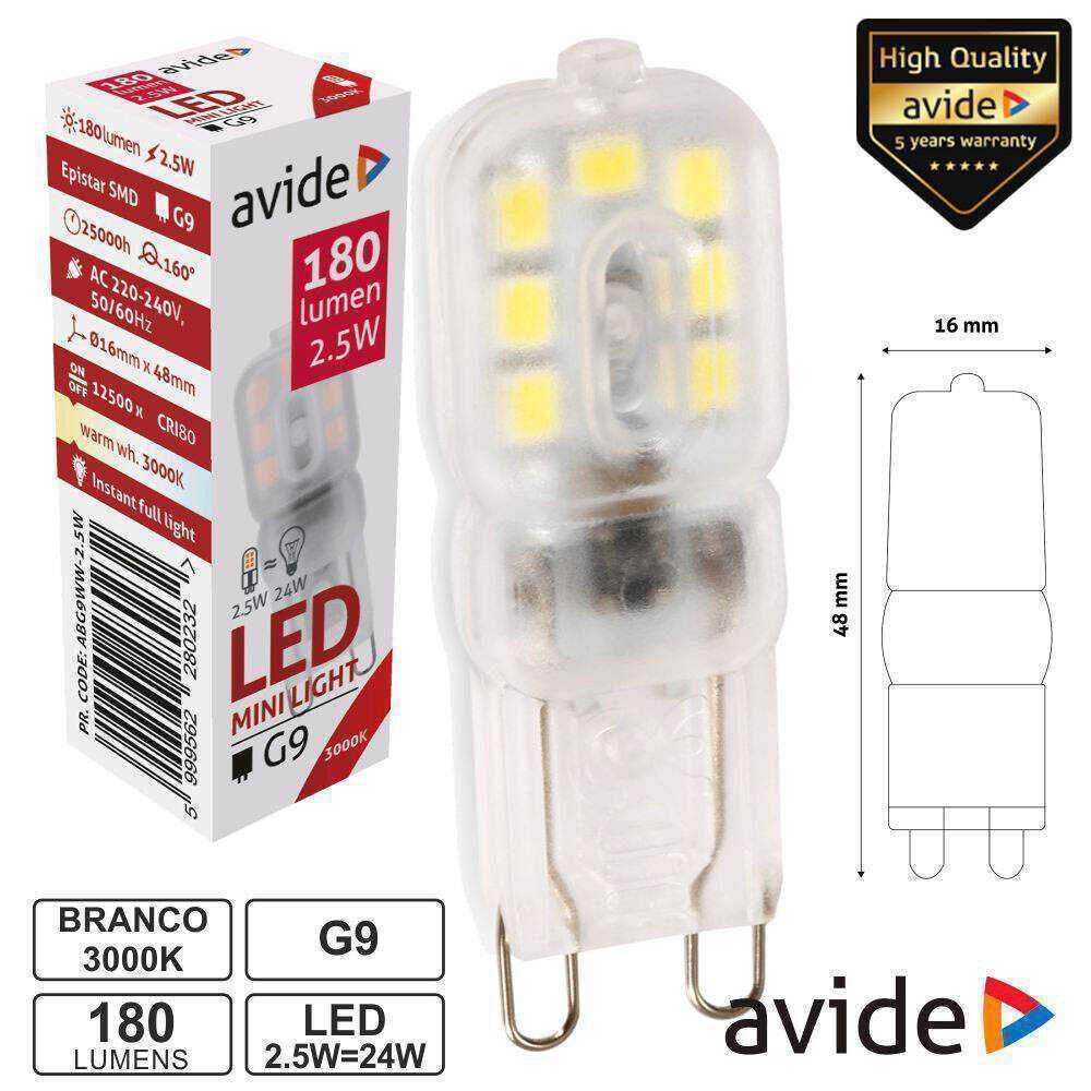 Lâmpada LED G9 2.5W 230V 3000k 180lm AVIDE