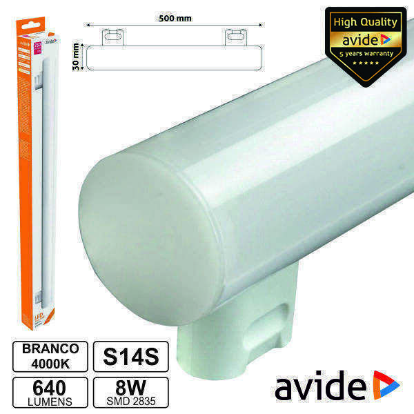 Lâmpada Tubular 8W 50cm LEDS S14s 4000k 640lm AVIDE