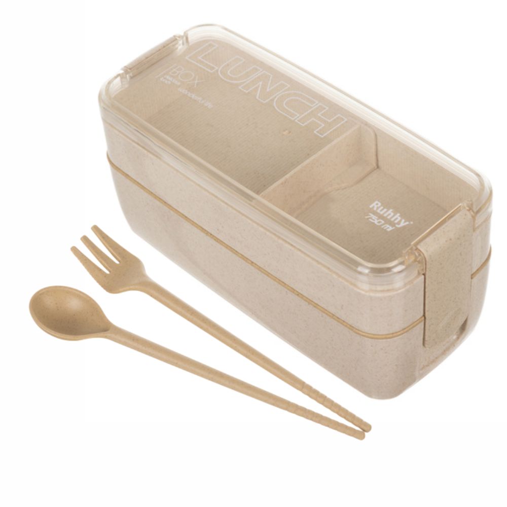 Lancheira C/ 3 Compartimentos e Talheres 750ml