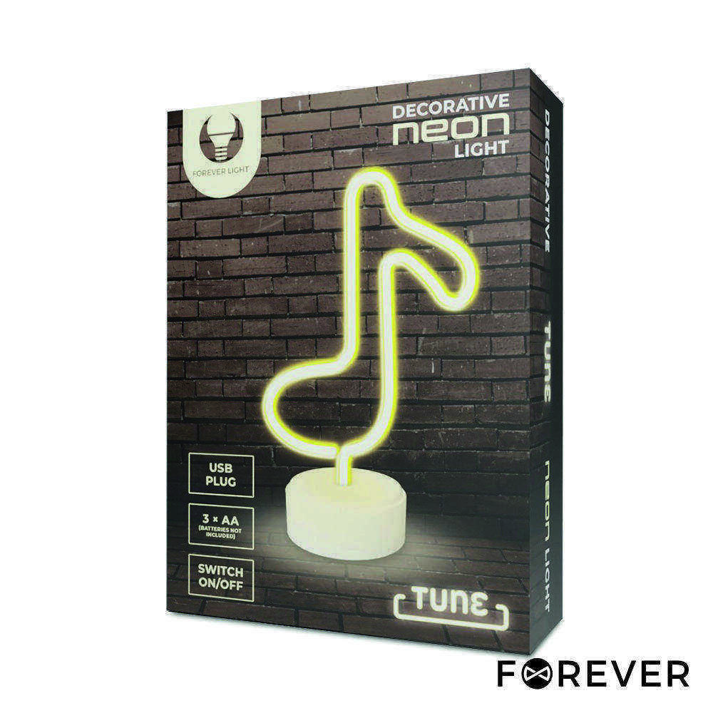– Luz LED neon em forma de nota musical– Ideal para decoração, Equipado c/ base redonda– Comprimento do cabo: 2m– Alimentação: 3x AA ou via USB 5V