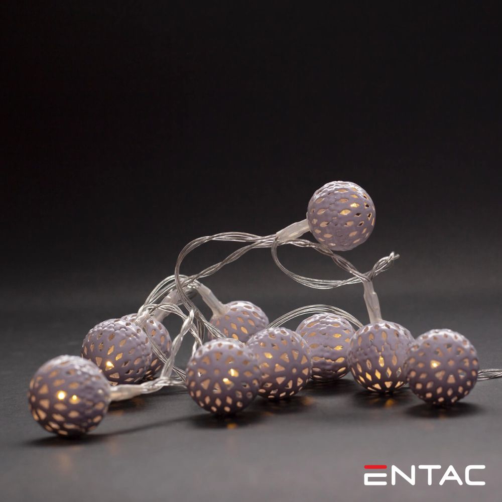 Luzes de Natal 10 LED 3000K Esferas Metal a pilhas 1m ENTAC