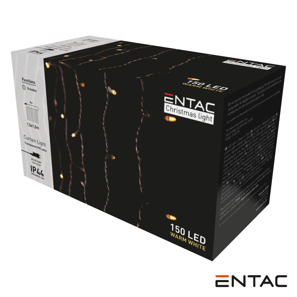 – Cortina LED– Número de LEDS: 150– Grau de proteção: IP44, fio transparente– 8 Modos de luz selecionáveis– Dimensões: 1.5×1.5m– Alimentação: 220-240V
