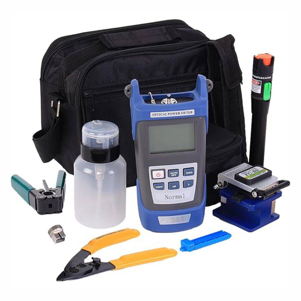 de limpeza, garrafa dispensadora e adaptadores SC/FC