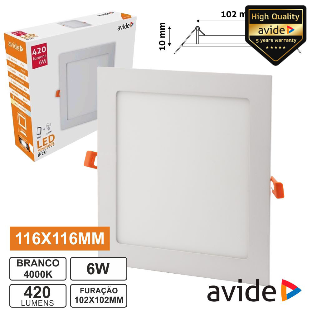 Painel LEDS Quadrado 6W 116mm 4000k 420lm AVIDE