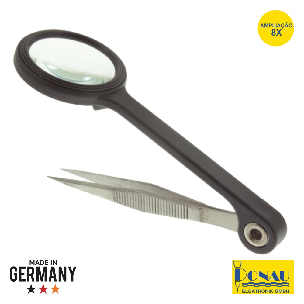 – Pinça c/ pontas pontiagudas e lupa– Pinça de alta qualidade p/ eletrónica– Diâmetro da lupa: Ø25mm– Ampliação: 8X, posição ajustável– Produto produzido na Alemanha
