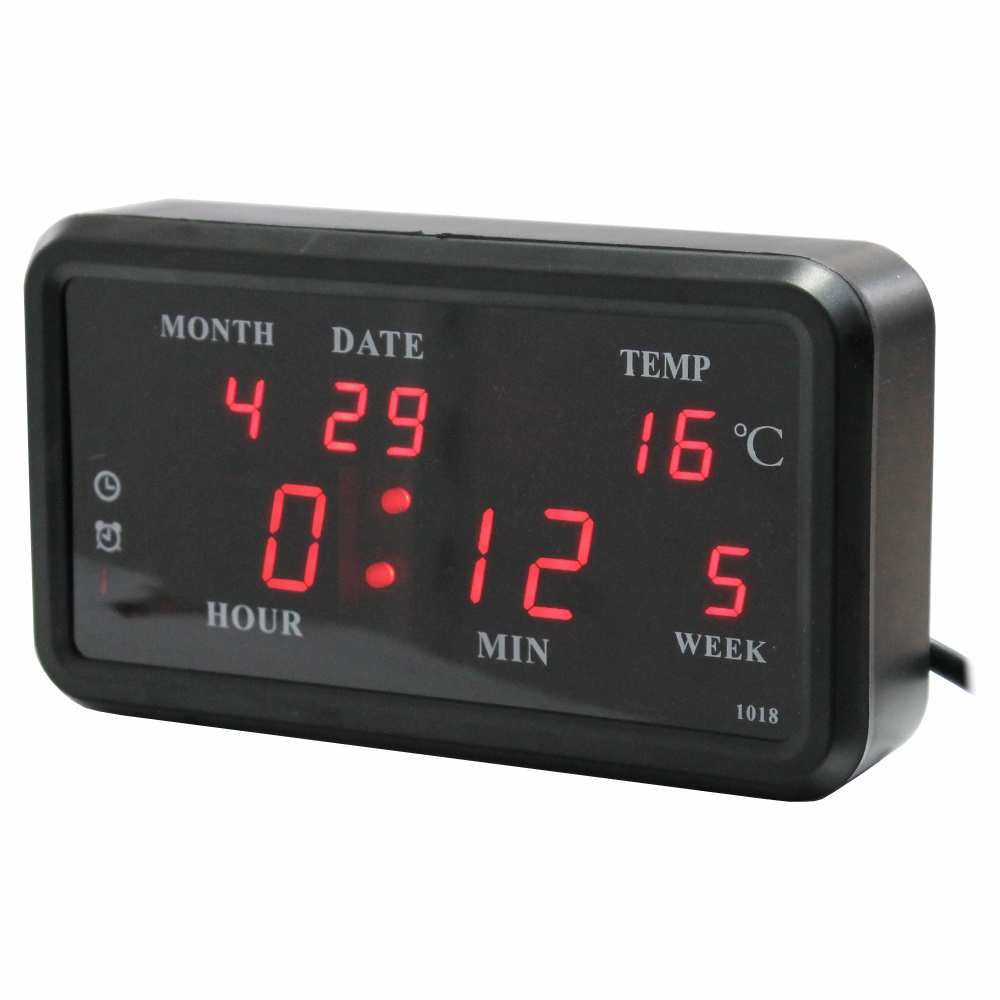 – Relógio c/ termómetro (ºC) e alarme– Hora, Ano, Mês, Dia e temperatura– Visor LED c/ digitos de grandes dimensões– Tensão funcionamento: 230Vac– Relógio c/ alarme, estrutura ABS