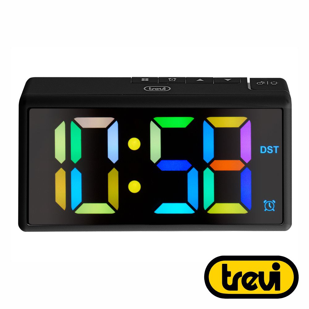 – Ecrã LED digital multicolorido– Regulação de volume em 3 níveis– Com modo “snooze”– Fonte de alimentação: 3x AAA ou 100-240Vac 50/60Hz