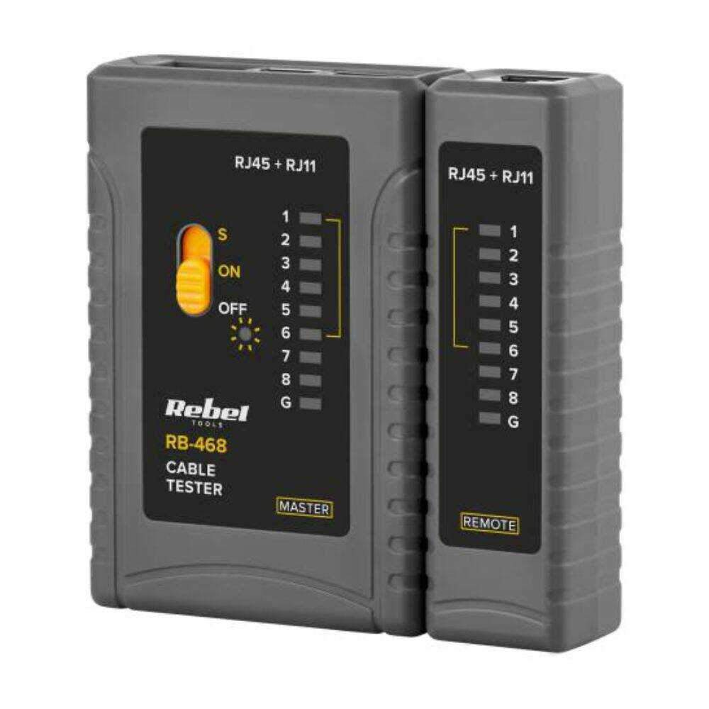 – Testador de linhas telefónicas– Indicadores de tensão LED– Teste de cabos: RJ11, RJ12, RJ45– Teste de continuidade, Modo Rápido e Lento– Alimentação: bateria de 9V– Recetor amovível