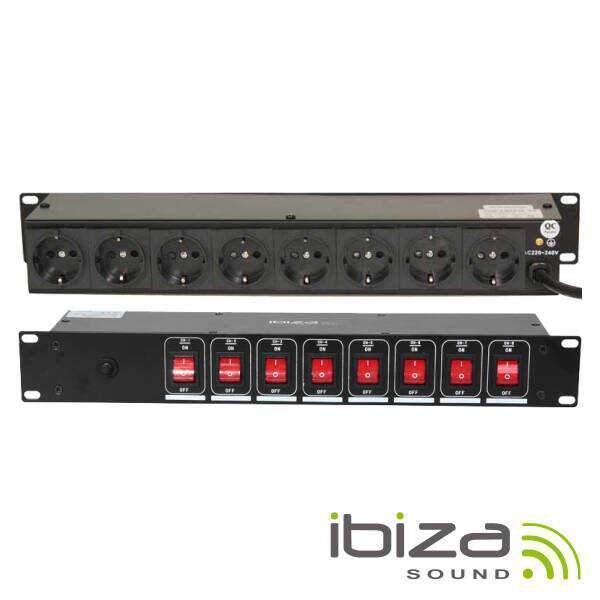 Tomada Elétrica 8x Schuko C/ Interruptores P/ Rack 19″ IBI