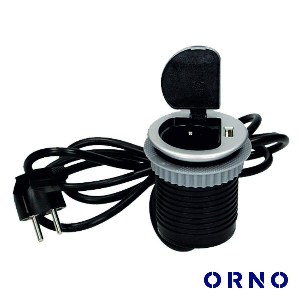 Tomada Elétrica Encastrar 1x Schuko 1x USB-A Preta ORNO