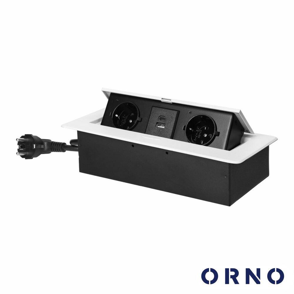 Tomada Elétrica Encastrar 2x Schuko 2x USB Branco ORNO