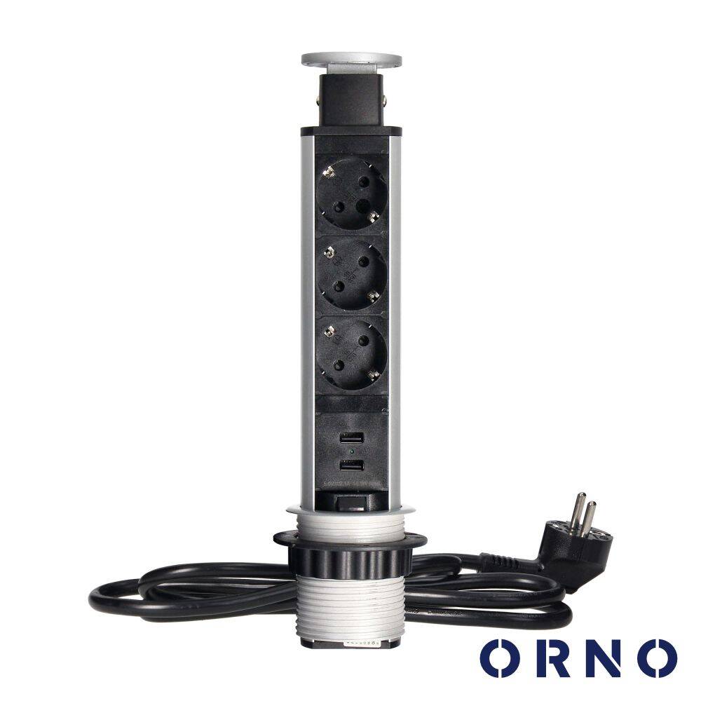 Tomada Elétrica Encastrar 3x Schuko 2x USB-A Preta ORNO