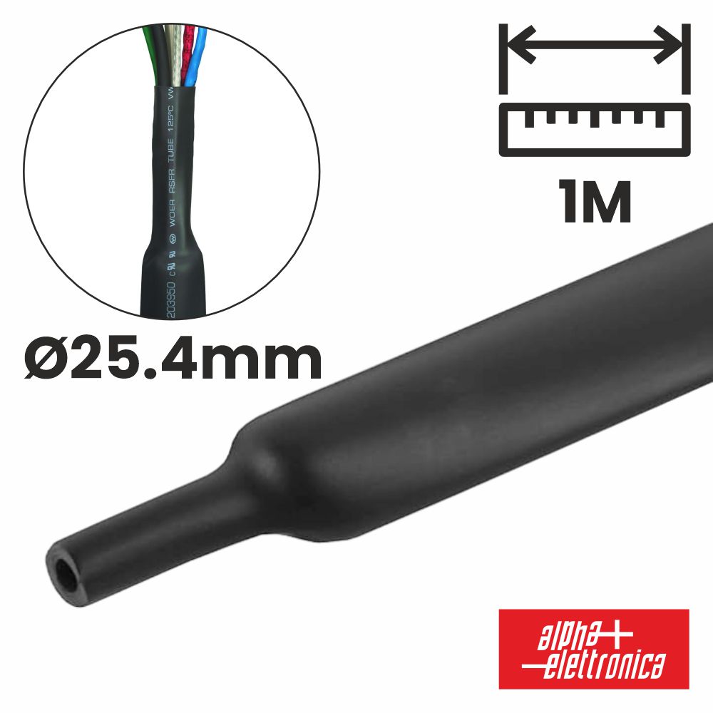 – Tubo manga Termoretráctil com 1 Metro– Diâmetro do tubo: Ø25.4mm, Preto– Temperatura de encolhimento: 90ºC– Redução até 12.7mm