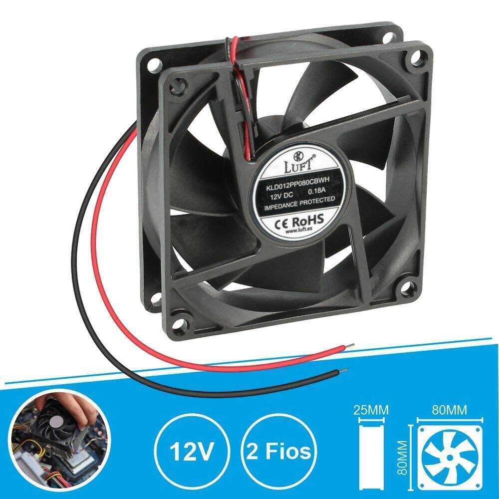 Ventilador 12V 80x80x25mm 2 Fios KLD012PP080CBWH LUFT
